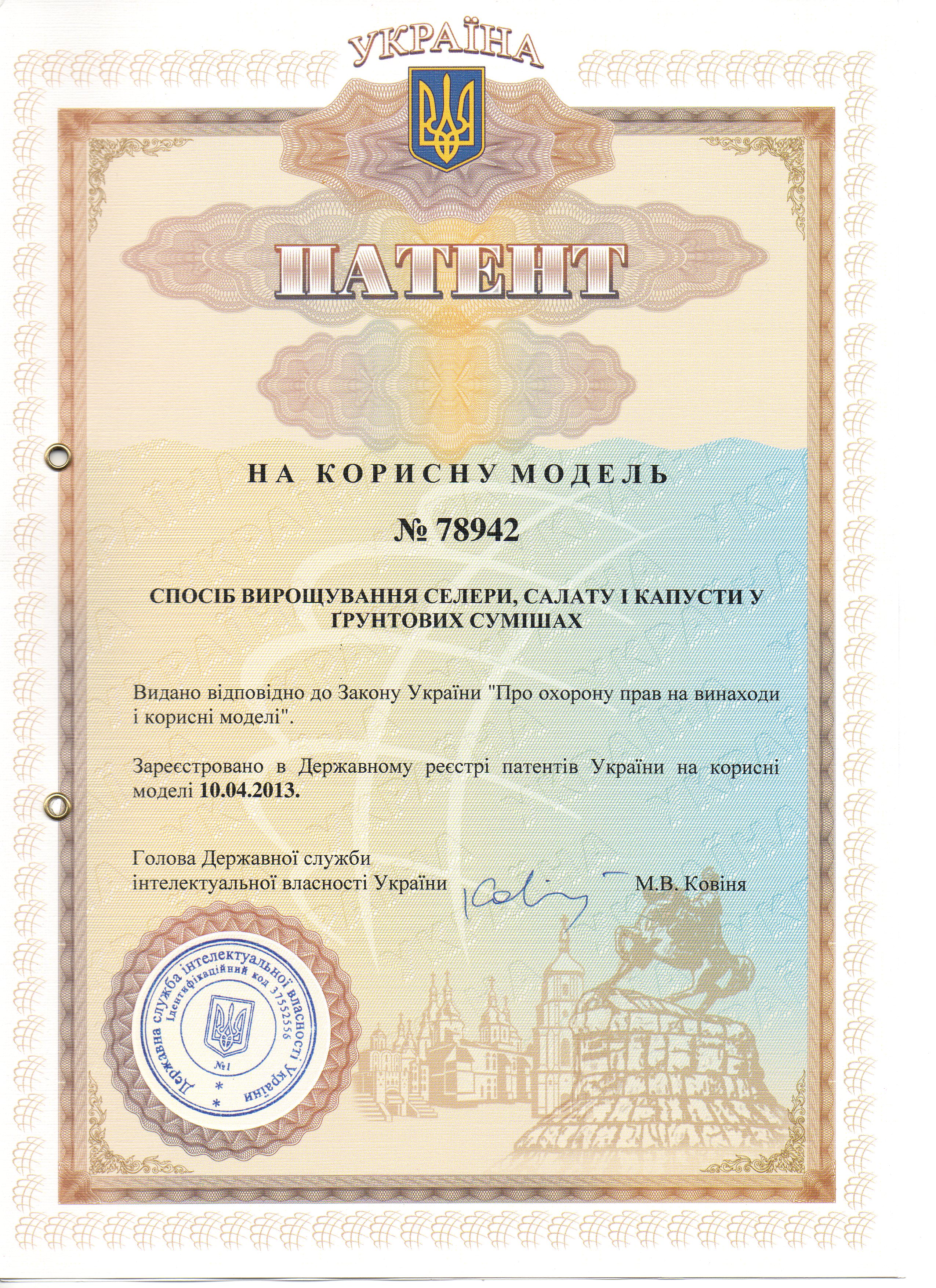 патент, корисна модель, селера, салат, капуста, грунтова суміш